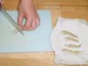 先ずはえびを砂取り、そして背中に何箇所包丁を入れる(切断しないように軽く)。 |